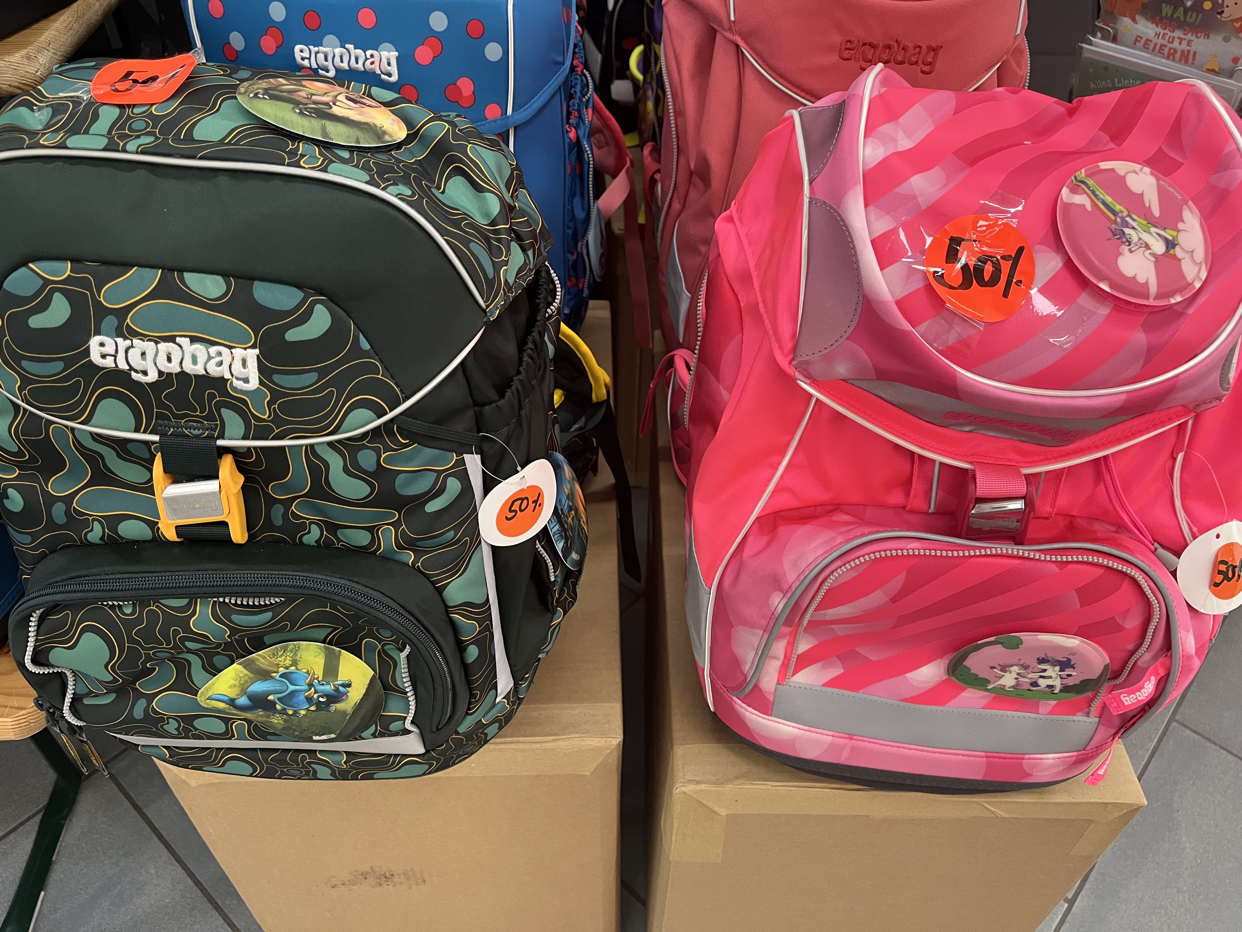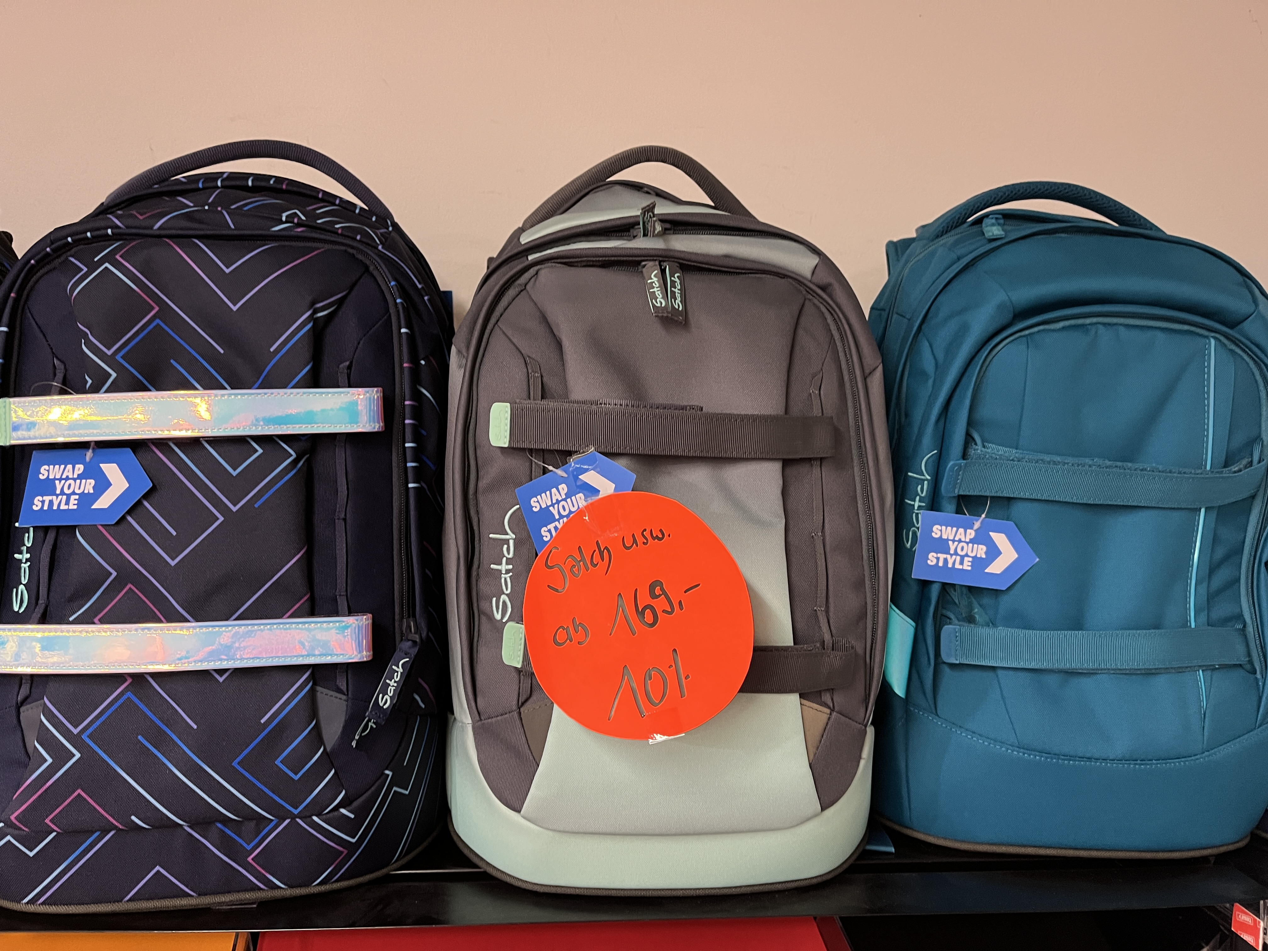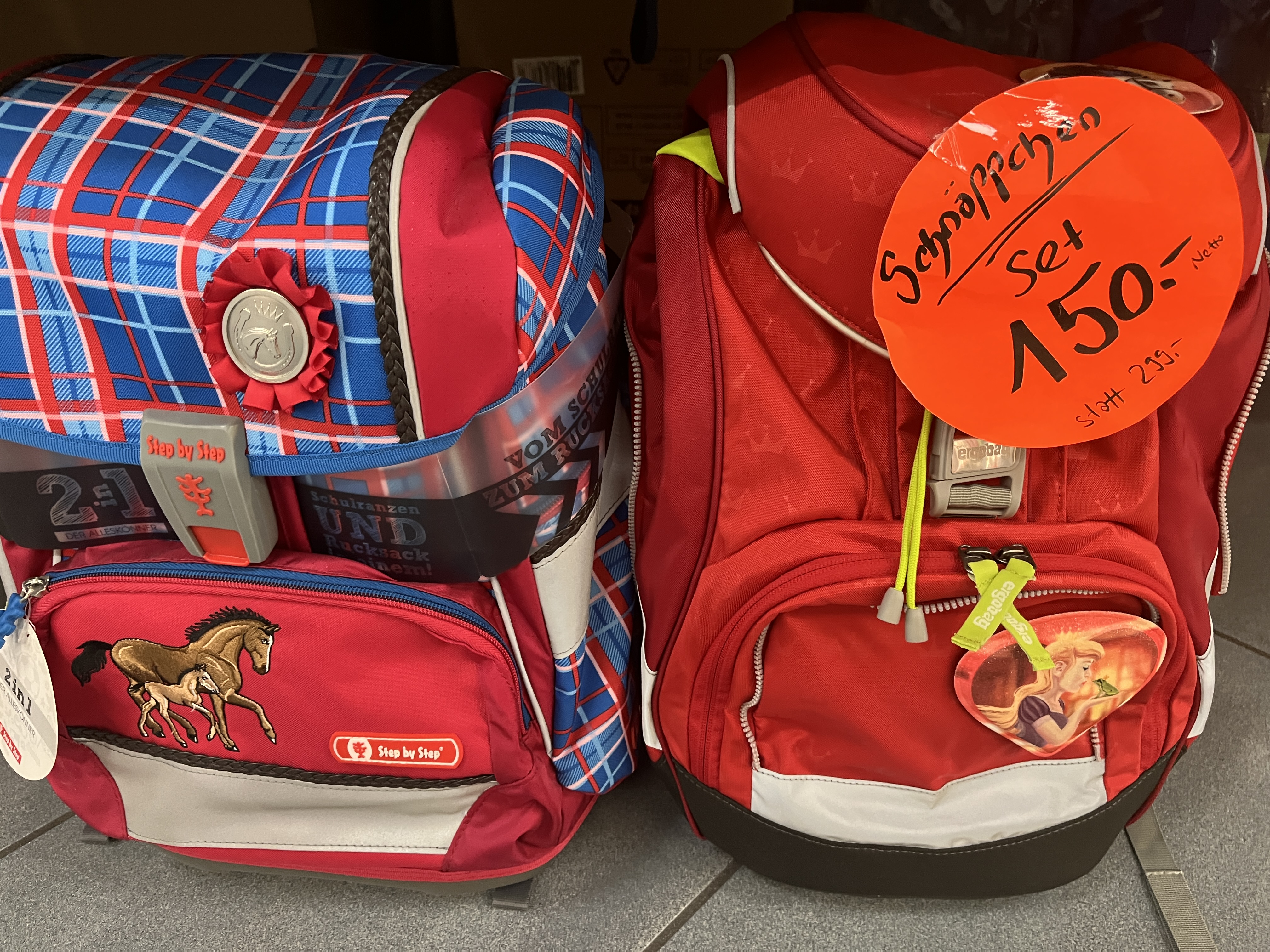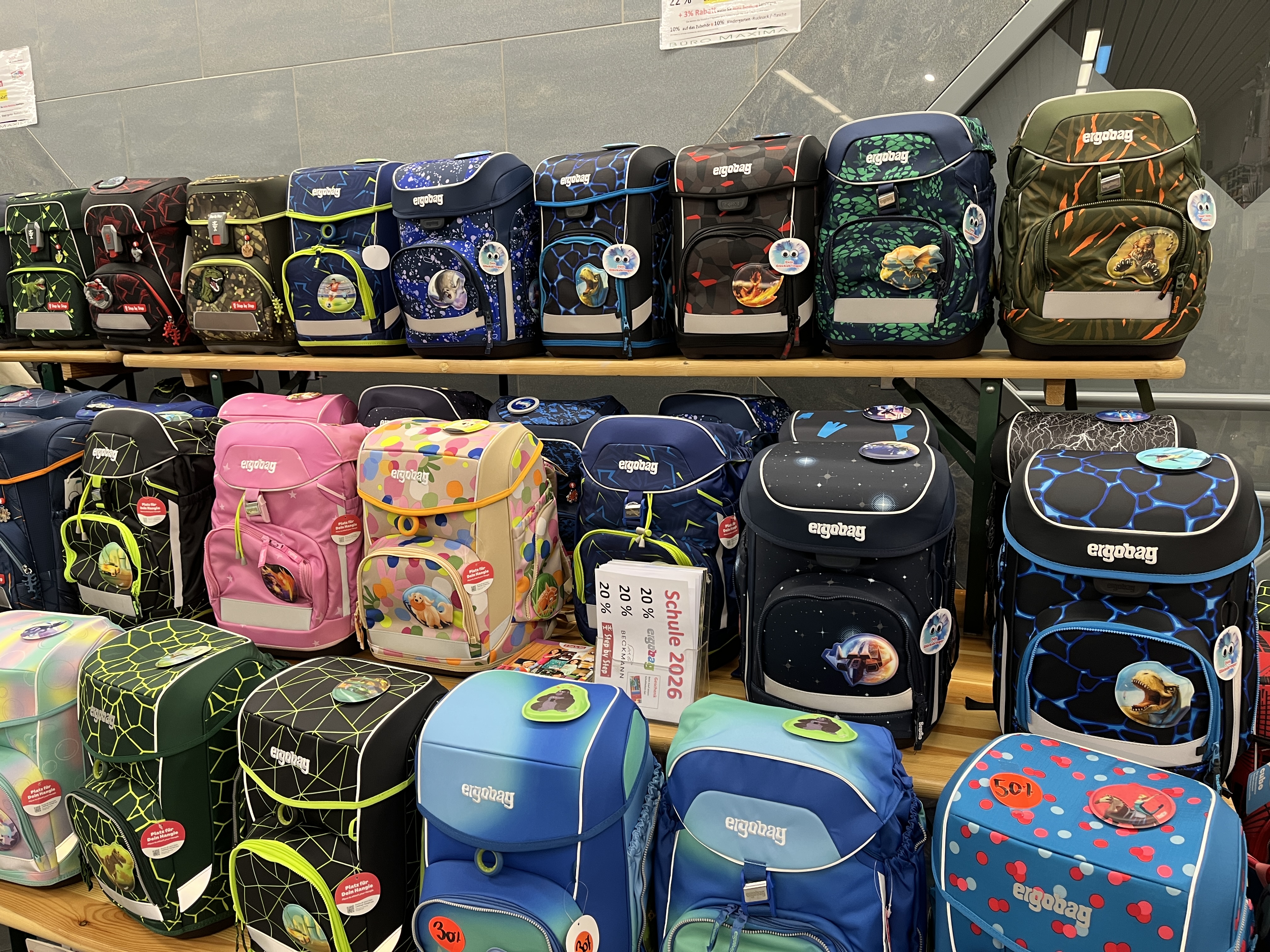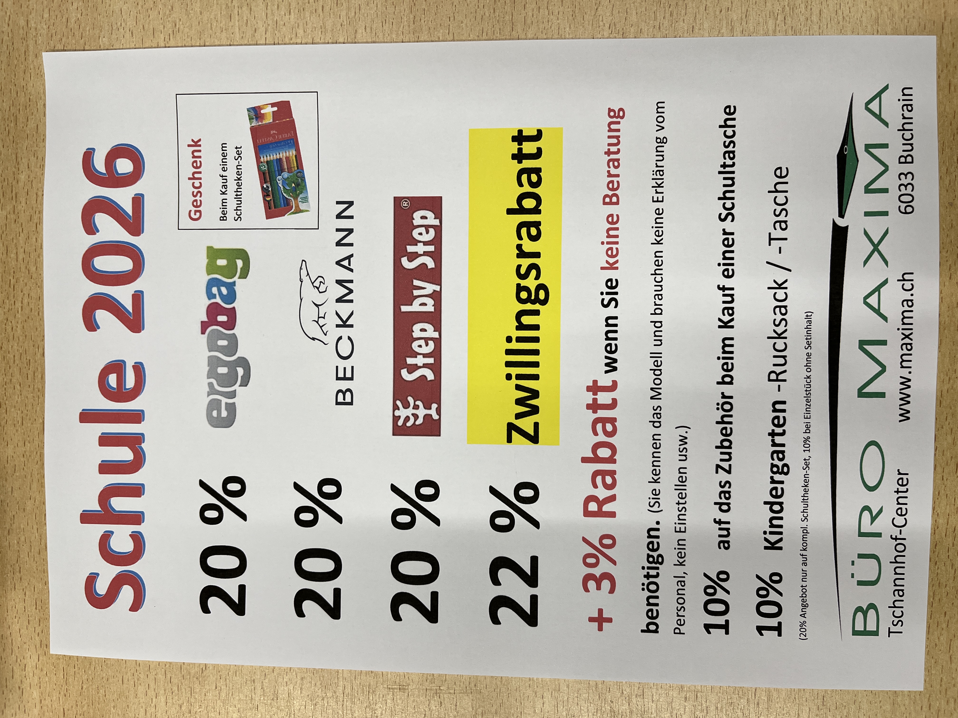 22% Zwillingsrabatt, beim Kauf von zwei Schultheken oder Rucksäcke (Ausweis mitbringen).